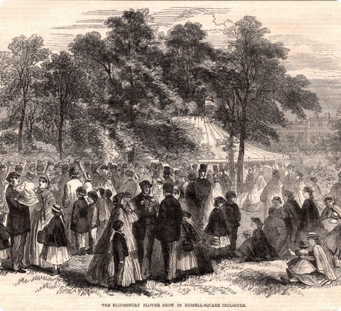 In the 1860s the clergy and the wealthy of the neighbouring area of Bloomsbury encouraged the local poor to grow flowers in window boxes and exhibit them in flower shows, such as The Bloomsbury Flower Show of 1865.